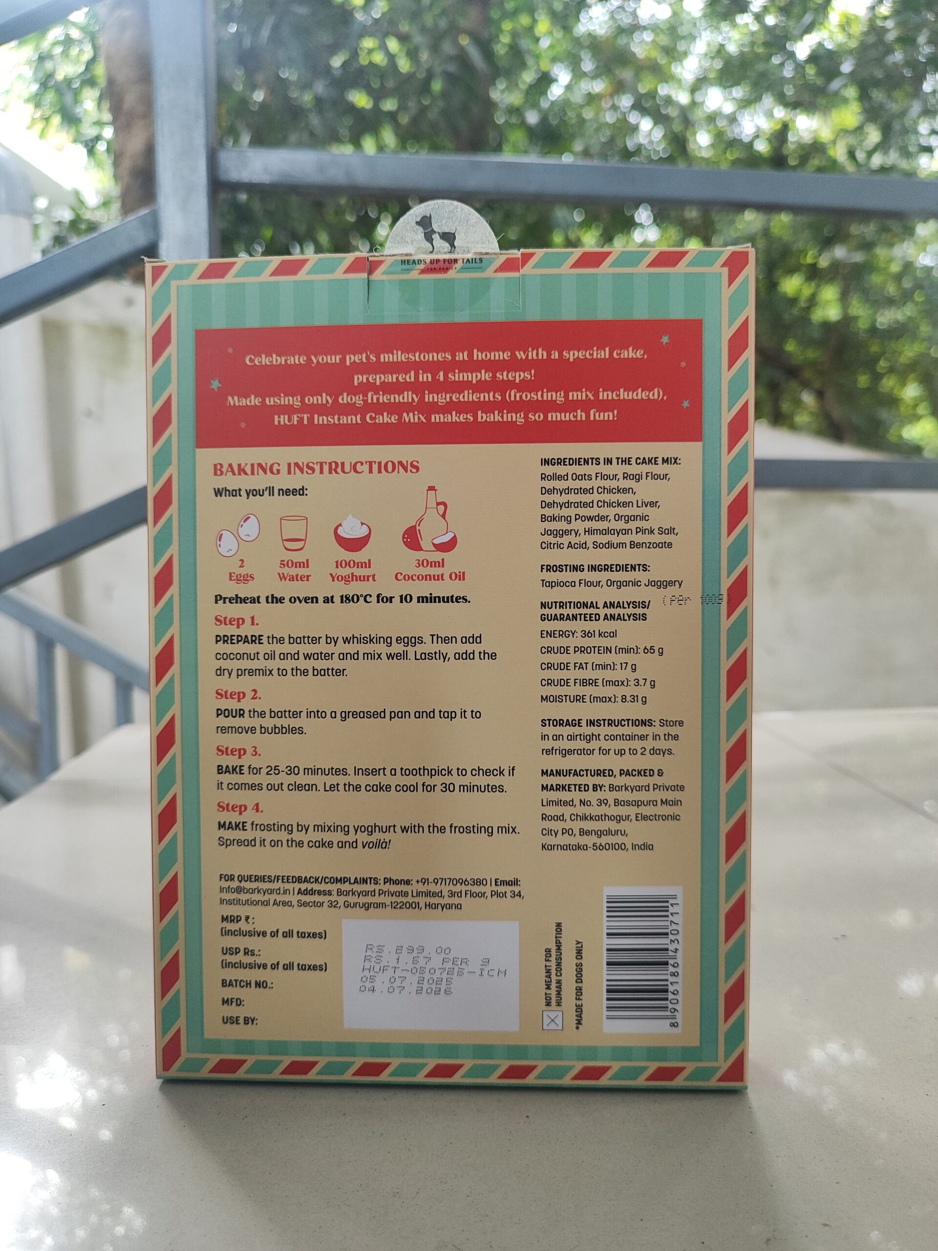 HUFT INSTANT CHICKEN CAKE FROSTING MIX GLUTEN FREE TRAT FOR DOGS-190GM